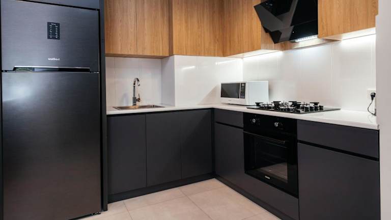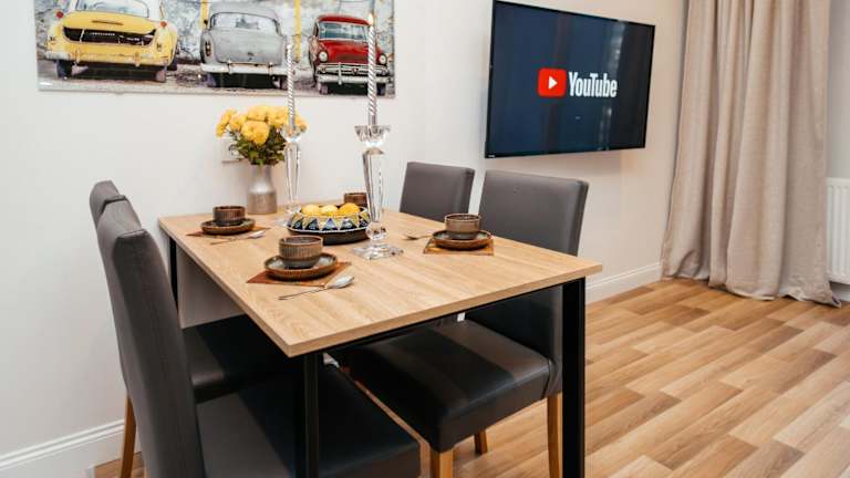 Die Ferienwohnung besteht aus einem Schlafzimmer, einem Wohnzimmer und einer voll ausgestatteten Küche mit Kühlschrank und Wasserkocher. Zudem hat es ein Badezimmer mit Dusche und kostenlosen Pflegeprodukten. Handtücher und Bettwäsche werden zur Verfügung gestellt.