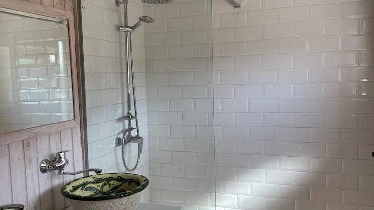Das Ferienhaus bietet eine voll ausgestattete Küche mit Kühlschrank, Geschirrspüler und Ofen. Es umfasst ein Wohnzimmer, einen Essbereich sowie drei Schlafzimmer und zwei Badezimmer mit Badewanne oder Dusche. Handtücher und Bettwäsche werden bereitgestellt.
