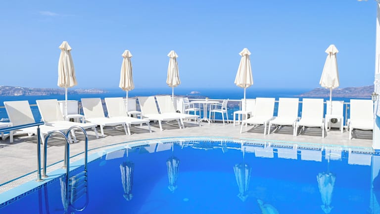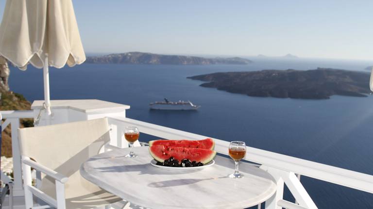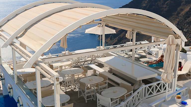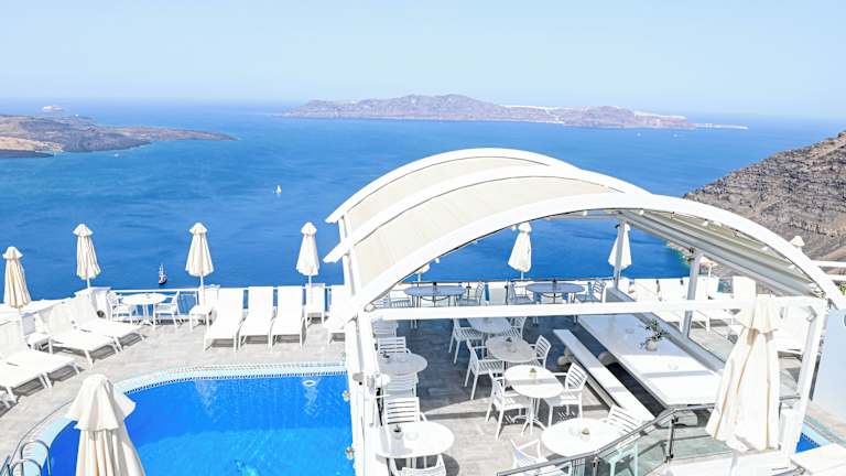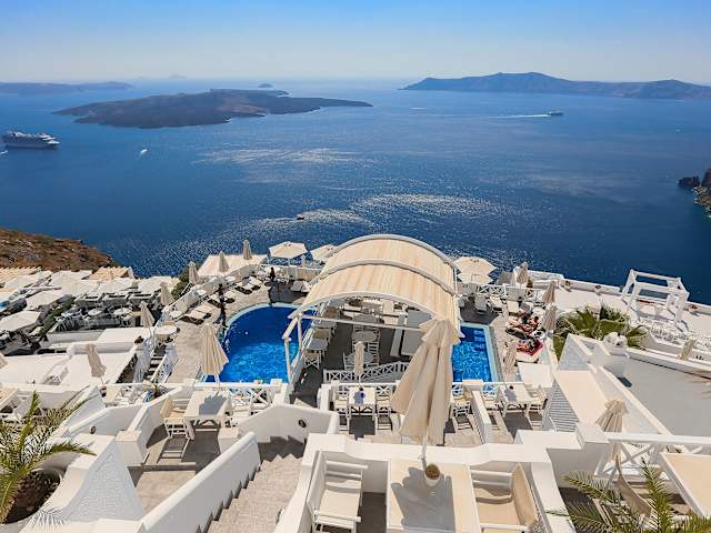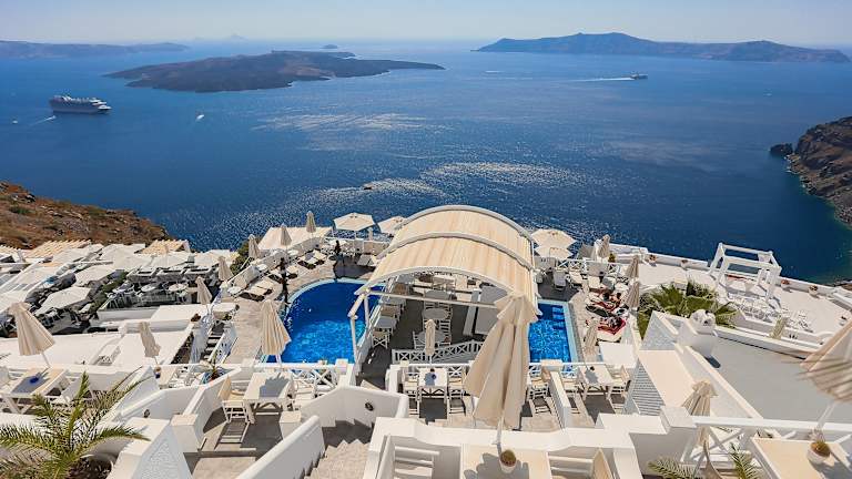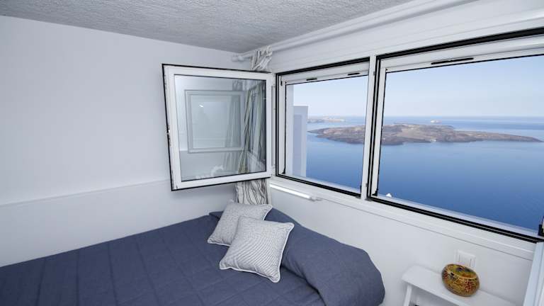 Die Unterkunft befindet sich auf der charmanten Insel Santorin, in der ruhigen Ortschaft Firostefani. Es bietet eine beeindruckende Aussicht auf die Caldera und ist nur etwa 600 Meter vom Stadtzentrum von Fira entfernt. Der Strand ist etwa 8 Kilometer entfernt.