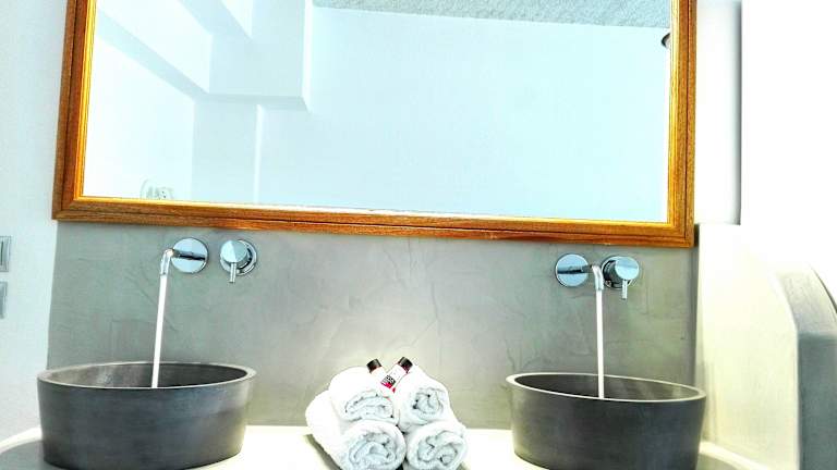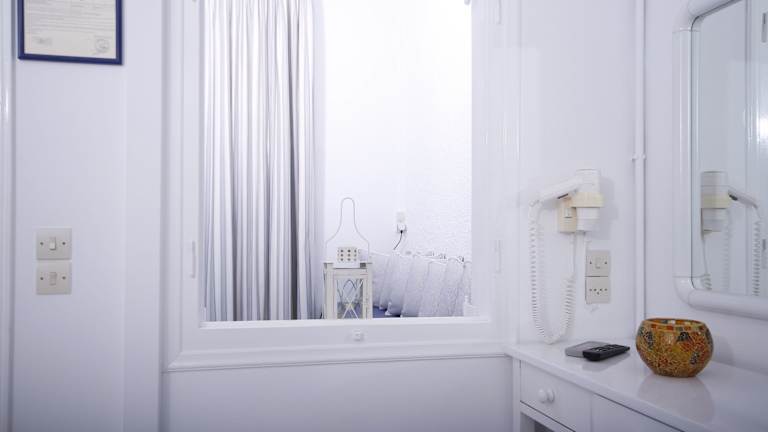 Die Studios sind mit Klimaanlage und Heizung ausgestattet und verfügen über einen Balkon oder eine Terrasse mit Meerblick. Die Ausstattung umfasst ein Doppelbett, eine gut ausgestattete Kochnische mit Kühlschrank, Herd und Tee-/Kaffeemaschine. Zusätzlich stehen ein Telefon, ein TV-Gerät, ein Radio und kostenloses Wifi zur Verfügung. Im Badezimmer befinden sich eine Dusche sowie ein Haartrockner. Es gibt sowohl Nichtraucherzimmer als auch eine familienfreundliche Unterkunft.
