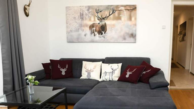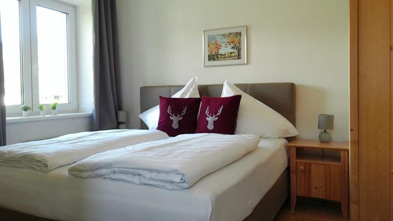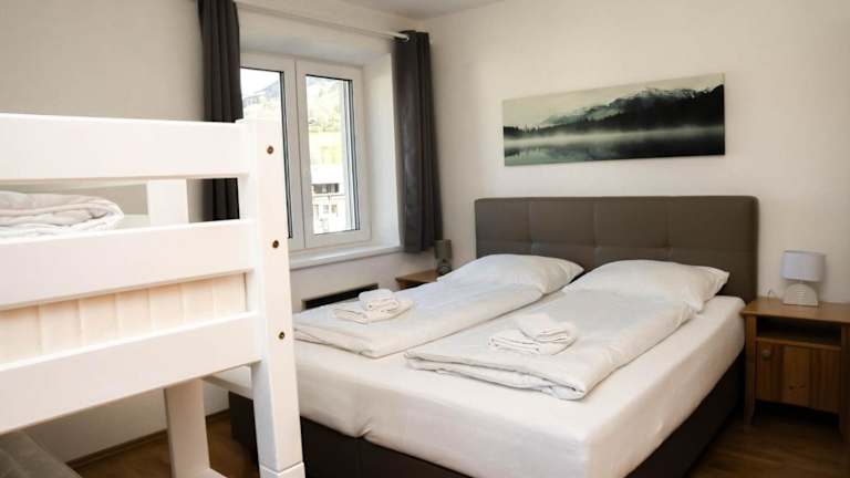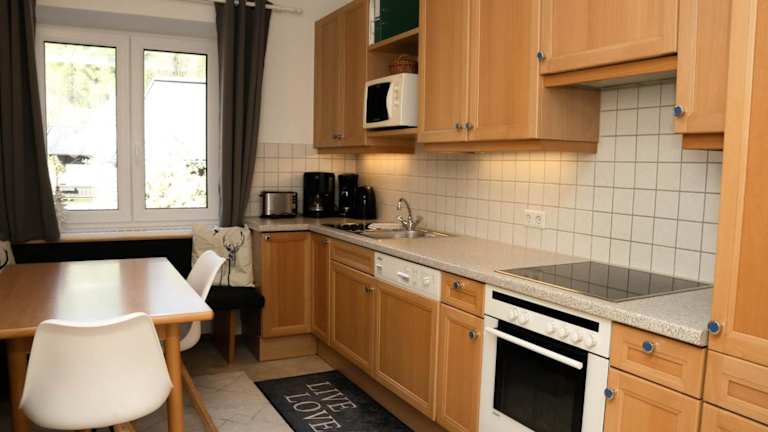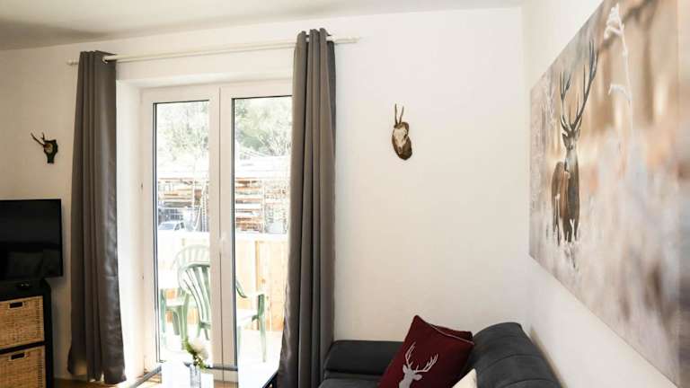 Die Ferienwohnung umfasst ein Schlafzimmer, eine voll ausgestattete Küche mit Kühlschrank und Geschirrspüler, einen komfortablen Sitzbereich sowie ein Badezimmer mit Badewanne. Vom Balkon aus haben die Gäste einen schönen Ausblick auf die umliegenden Berge.