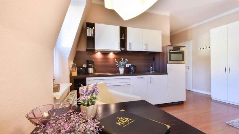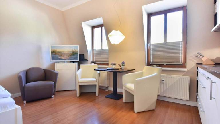 Kaisers vis a vis - Doppelzimmer bietet eine gut ausgestattete Ferienwohnung mit einem heimeligen Wohnzimmer und einer voll ausgestatteten Küche, die mit Kühlschrank und Geschirrspüler ausgestattet ist. Handtücher und Bettwäsche sind ebenfalls vorhanden. Die Unterkunft ist rauchfrei und bietet eine angenehme Atmosphäre für einen entspannten Aufenthalt.