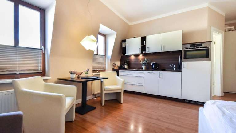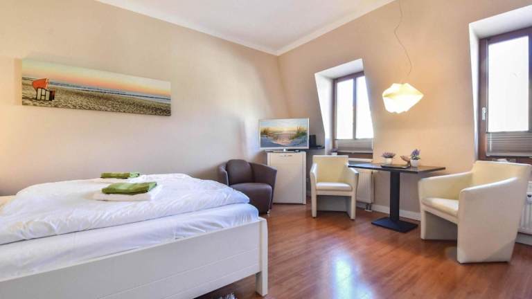 Das Doppelzimmer in der Ferienwohnung verfügt über ein gemütliches Ambiente und ist ausgestattet mit einem Wohnzimmer, einer voll ausgestatteten Küche, Kühlschrank und Geschirrspüler. Handtücher und Bettwäsche sind in der Unterkunft vorhanden. Das Zimmer ist Teil einer Nichtraucherunterkunft und für Gäste ab 18 Jahren vorgesehen.