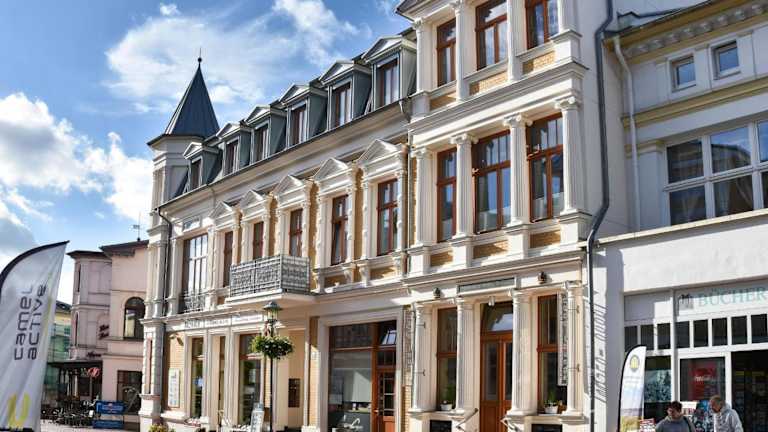 Die Unterkunft Kaisers vis a vis - Doppelzimmer befindet sich in Heringsdorf, nur 2,2 km vom Strand in Bansin entfernt. Der Strand Ahlbeck ist ebenfalls in 500 m erreichbar. Der Bahnhof Swinemünde liegt 14 km entfernt, während die Seebrücke Ahlbeck nur 3 km entfernt ist. Der nächste Flughafen ist der Flughafen Heringsdorf, welcher 14 km entfernt ist.