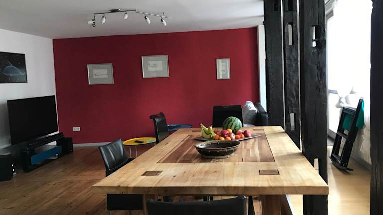 Das Kaiserslautern Apartment bietet Ihnen eine gemütliche Terrasse, auf der Sie sich entspannen und die Aussicht auf die Stadt genießen können. In der Umgebung gibt es viele interessante Orte zu entdecken, wie zum Beispiel die Stiftskirche Kaiserslautern, das Pfalztheater Kaiserslautern und das Museum Pfalzgalerie Kaiserslautern. Sie können auch Spaziergänge in der Natur unternehmen oder die Umgebung mit dem Fahrrad erkunden.