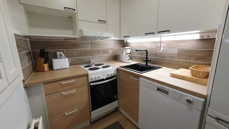 Die Unterkunft verfügt über eine voll ausgestattete Küche mit Kühlschrank und Kaffeemaschine, die den Gästen die Möglichkeit bietet, sich selbst zu verpflegen. Keine weiteren Verpflegungsmöglichkeiten vorhanden.