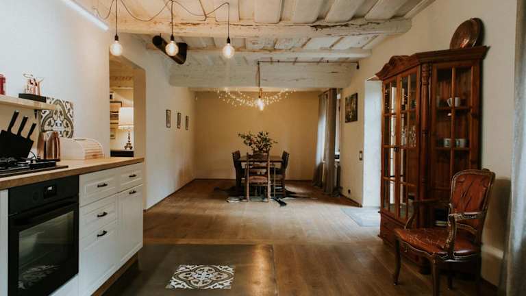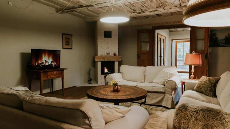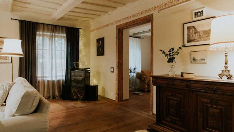 Die Kalēju ielas rezidence: Talsu vecpilsētas pērle bietet Übernachtungsmöglichkeiten in einer heimeligen Villa mit Garten, einer Veranda und einer Terrasse mit Stadtblick. Es steht den Gästen eine Gemeinschaftsküche und eine Gemeinschaftslounge zur Verfügung. Ein Grill ist vorhanden, und der Garten lädt zum Entspannen ein.