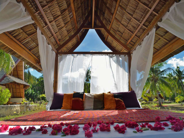 Das Kalachuchi Beach Resort bietet 6 grosszügig gebaute Häuser, mit Terrasse und eigenem Vorgarten zum entspannen. 5 der 6 Häuser sind doppelstöckig und haben je 2 grosse Betten. Alle Häuser sind mit Klimaanlage, Fan und Minibar ausgestattet, sowie je 2 Liegestühle. Ein Babybett aus Bambus steht ebenfalls zur Verfügung, nach Anfrage. Kinder unter 12 bezahlen jeweils keinen Aufpreis, wenn Sie im gleichen Haus übernachten.