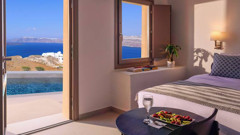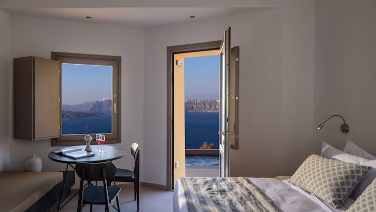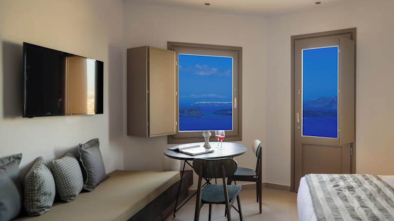 Die gut ausgestatteten Suiten bieten ein angenehmes Raumklima dank Klimaanlage und Heizung. Jedes Zimmer verfügt über einen Balkon oder eine Terrasse mit Meerblick, ein Queensizebett und ein Sofabett. Zu den Annehmlichkeiten gehören ein Safe, eine Minibar, eine Kochnische mit Kühlschrank und Tee-/Kaffeemaschine, ein Fernseher mit Satellitenempfang, WiFi, sowie ein eigenes Bad mit Dusche und Badewanne.