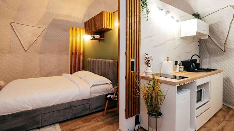 Die Zimmer im Kallias Dome Resort sind mit einem Whirlpool ausgestattet und verfügen über einen Sitzbereich, einen Flachbild-TV sowie eine voll ausgestattete Küche, die einen Kühlschrank und einen Ofen umfasst. Zur weiteren Ausstattung gehört ein eigenes Badezimmer mit einer Dusche, kostenlosen Pflegeprodukten sowie einem Haartrockner.