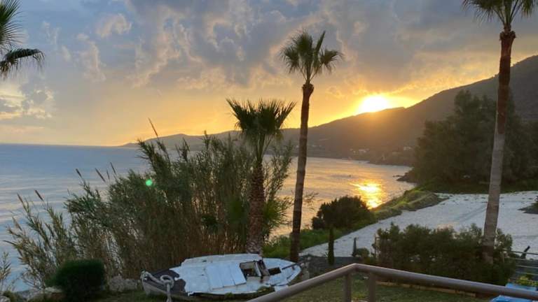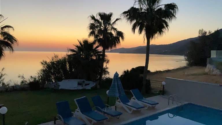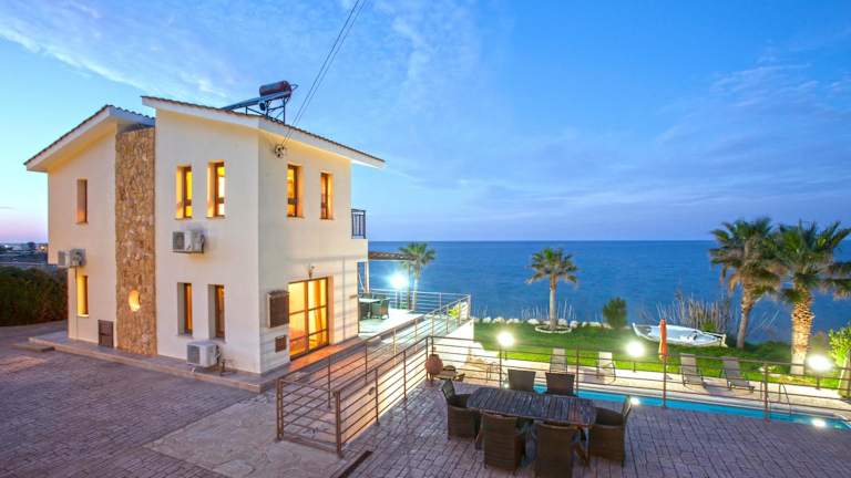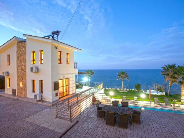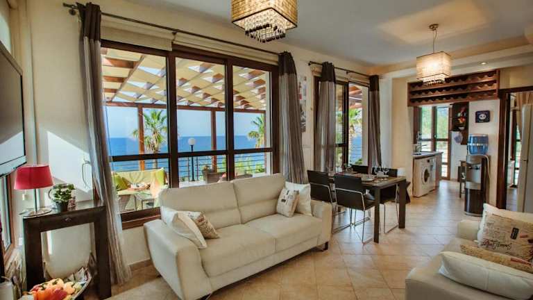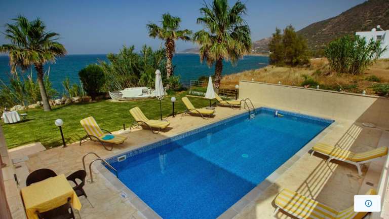 Die Kallinousa Beach Villa in Pomos ist ein traumhaftes Ferienhaus direkt am Strand, das mit einem eigenen Pool und einem Whirlpool aufwartet. Die Villa erstreckt sich über zwei Ebenen und verfügt über drei Schlafzimmer sowie raumhohe Fenster, die einen atemberaubenden Blick auf das Mittelmeer, den Garten und die Berge bieten. Die voll ausgestattete Küche und der Essbereich sorgen für Ihren Komfort, während die Klimaanlage und Heizung das ganze Jahr über eine angenehme Atmosphäre gewährleisten. Entspannen Sie auf den Liegestühlen am Pool oder genießen Sie ein Grillfest im gepflegten Garten. Bei Ihrer Ankunft erwartet Sie ein reichhaltiges Begrüßungspaket mit Getränken, Frühstücksprodukten und verschiedenen Köstlichkeiten. Auf Bestellung können Sie sich auch Frühstück, Mittag- und Abendessen in die Villa liefern lassen. Der Hafen von Pomos, mehrere Restaurants und Strände sind nur einen kurzen Spaziergang entfernt. Die Stadt Paphos und der internationale Flughafen Paphos liegen in einer Entfernung von etwa 55 km bzw. 65 km. Kostenlose Privatparkplätze stehen Ihnen direkt an der Unterkunft zur Verfügung.
