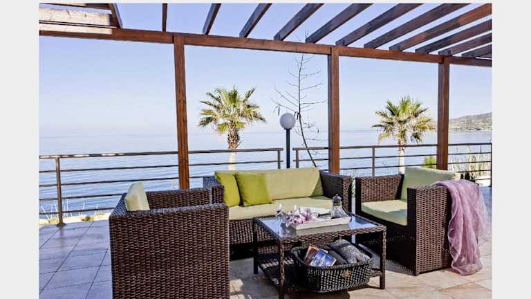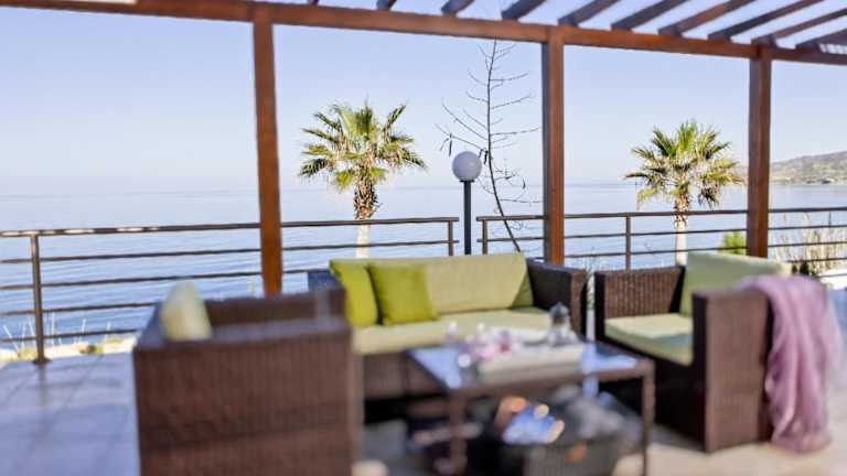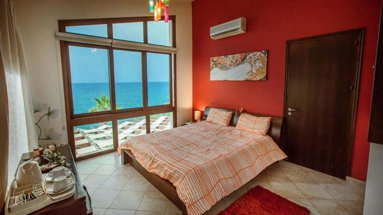 Die Kallinousa Beach Villa ist eine geräumige und luxuriöse Unterkunft, die auf zwei Ebenen verteilt ist. Sie verfügt über drei Schlafzimmer, die Platz für bis zu sechs Gäste bieten. Die Villa ist geschmackvoll eingerichtet und mit modernen Annehmlichkeiten ausgestattet. Sie können sich in der Whirlpool-Badewanne entspannen oder die atemberaubende Aussicht von den zwei Balkonen und der möblierten Terrasse genießen. Die raumhohen Fenster lassen viel Tageslicht herein und bieten einen freien Blick auf das Mittelmeer, den Garten und die Berge. Die Villa verfügt auch über eine voll ausgestattete Küche und einen Essbereich, sodass Sie Ihre eigenen Mahlzeiten zubereiten können. Klimaanlage und Heizung sorgen für eine angenehme Temperatur zu jeder Jahreszeit. WLAN steht Ihnen in der gesamten Villa kostenfrei zur Verfügung.