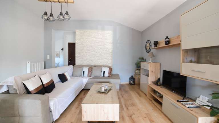 Kalliston - Meteora bietet eine heimelige Ferienwohnung mit 2 Schlafzimmern, die sich ideal für einen angenehmen Aufenthalt eignet. Die Ferienwohnung ist privat geführt und sorgt für eine ruhige Atmosphäre. Eine Terrasse mit Gartenblick lädt zum Verweilen ein. Die Unterkunft ist rauchfrei und es sind keinerlei Feierlichkeiten wie Junggesellenabschiede erlaubt.