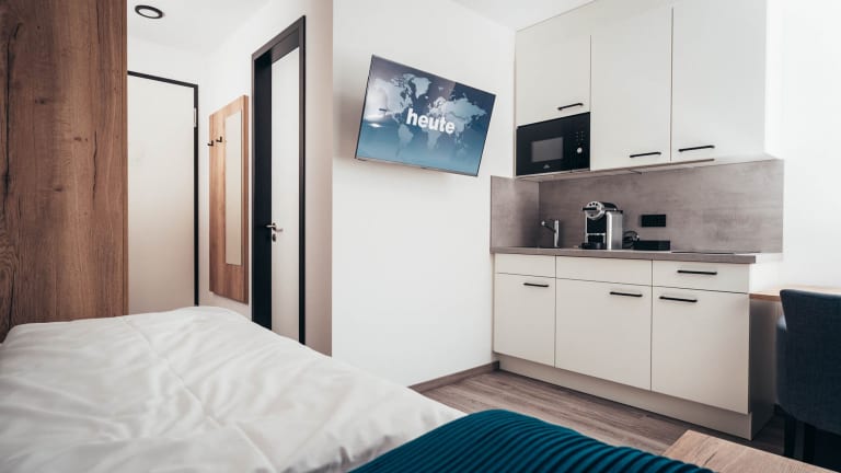 Die Wohneinheiten verfügen über Parkettböden, eine voll ausgestattete Küchenzeile mit Kühlschrank, Mikrowelle, Herdplatte und Kaffeemaschine. Ein Flachbild-TV mit Satellitenkanälen sowie ein eigenes Badezimmer mit Dusche und Haartrockner sind ebenfalls vorhanden.