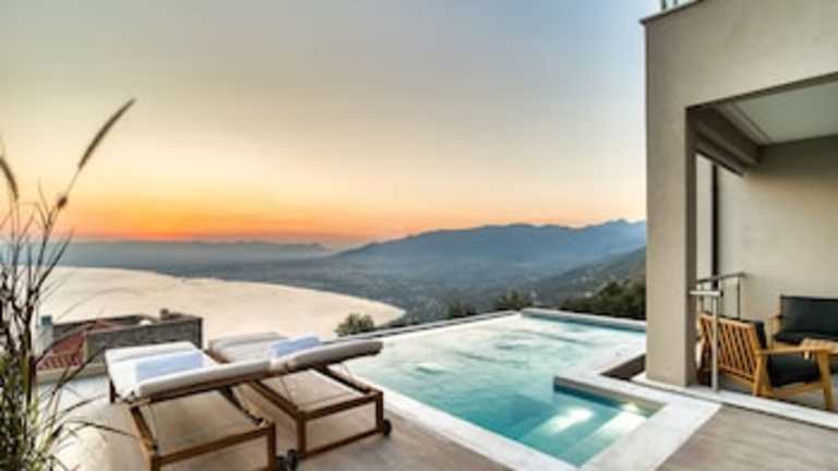 Kalma Luxury Villas bietet Übernachtungsmöglichkeiten mit kostenlosem Wifi, Klimaanlage und Zugang zu einem Garten mit einem ganzjährig nutzbaren Aussenpool. Die Unterkunft ist Nichtraucher und bietet familienfreundliche Zimmer. Punkte wie der Garten, die Terrasse und der Infinity-Pool laden zum Entspannen ein.