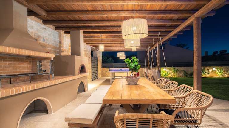 Die Villa ist mit einer voll ausgestatteten Küche, einem Essbereich und einer Terrasse mit Blick auf die Berge eingerichtet. Zusätzliche Ausstattung schliesst Klimaanlage und kostenfreies Wifi ein.