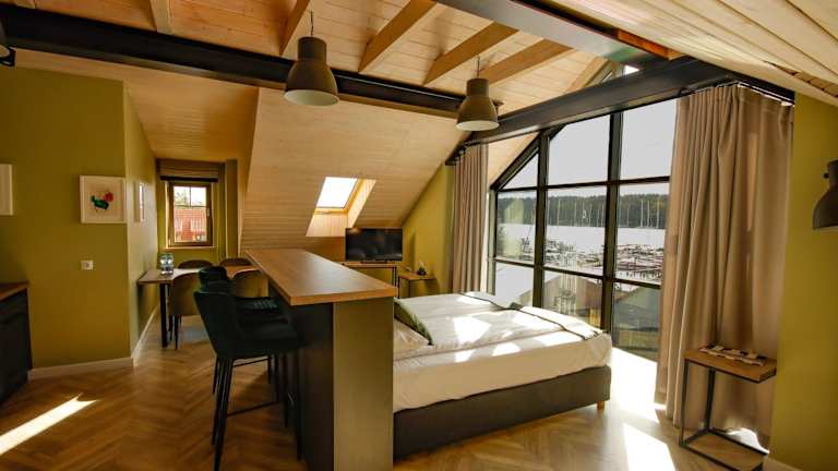 Die Unterkunft Kamienica Portowa befindet sich in Mikołajki, 45 km von der Kirche Święta Lipka (Heiligelinde) und nur 70 m von der Sailors' Village entfernt. Die Umgebung bietet zahlreiche Möglichkeiten zum Fahrradfahren. Der Aquapark Tropikana ist 1,8 km entfernt, während das Rathaus von Mragowo 25 km entfern liegt. Der nächstgelegene Flughafen, Olsztyn-Mazury, befindet sich 69 km von der Unterkunft entfernt.