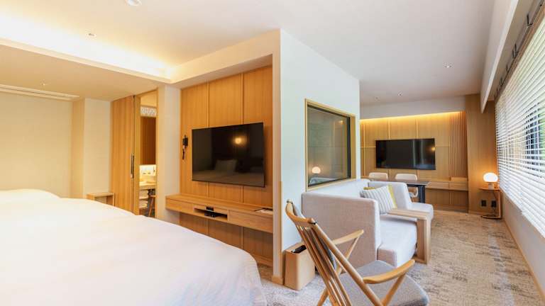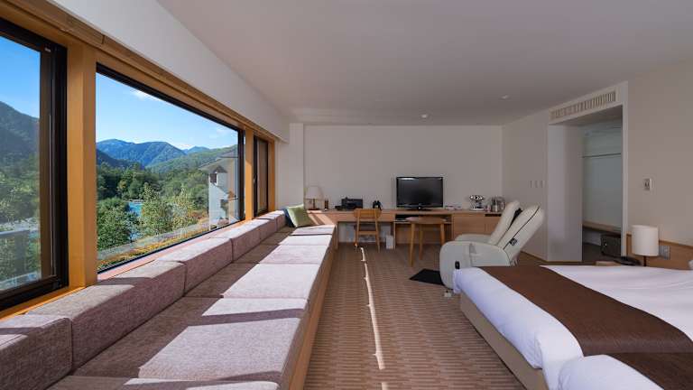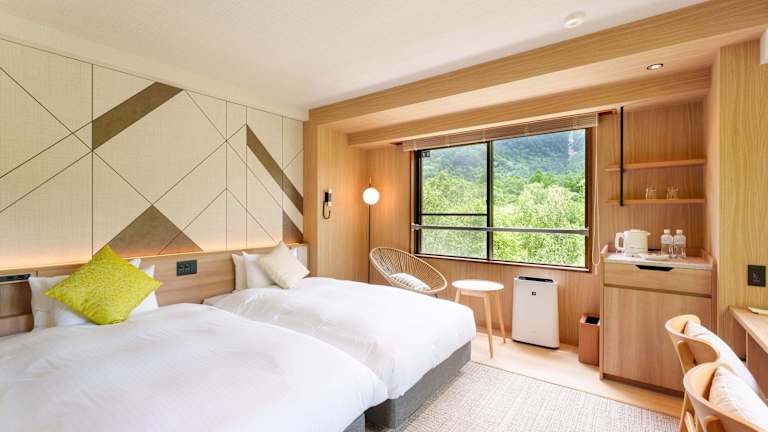 Das Hotel Kamikochi Shimizuya hat 27 Zimmer und zeichnet sich durch seine durchdachte Gestaltung aus. Eine besondere Bequemlichkeit bietet die Kooperationsmöglichkeit mit der Deutschen Bahn AG, welche Gästen ein Zug zum Flug Ticket bei bestimmten Buchungen ermöglicht.