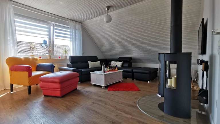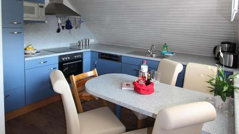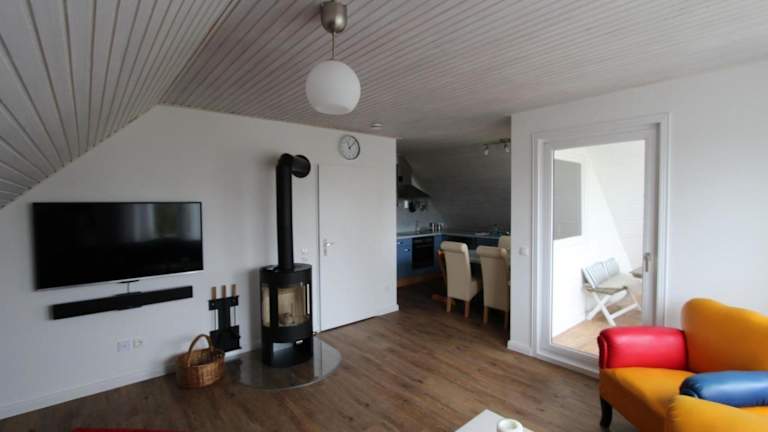 Die Ferienwohnung hat zwei Schlafzimmer, eine Küche mit Kühlschrank und Geschirrspüler sowie ein Badezimmer mit Dusche, Haartrockner und Waschmaschine. Zur Ausstattung gehören zudem ein TV, ein DVD-Player und ein CD-Player.