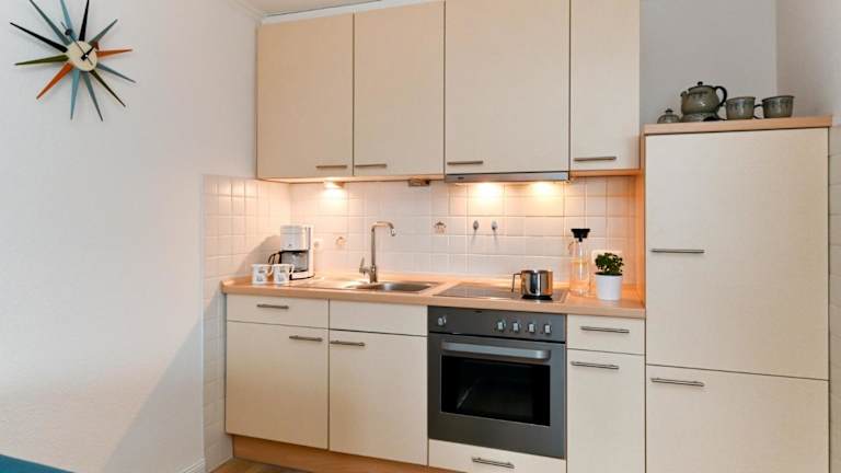 Die Ferienwohnung verfügt über 1 Schlafzimmer, ein Wohnzimmer mit einem Flachbild-TV sowie eine voll ausgestattete Küche mit Kühlschrank. Ein Badezimmer ist ebenfalls vorhanden. Für zusätzlichen Komfort können Handtücher und Bettwäsche gegen Aufpreis bereitgestellt werden.