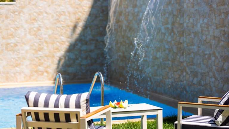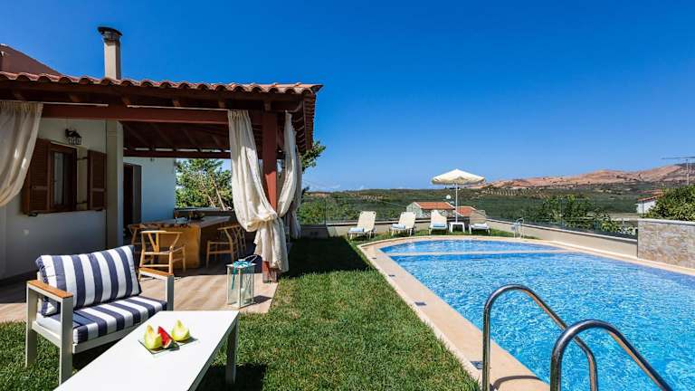 Kampos Villa III, Nature Living with Heated Pool, pure elegance, By ThinkVilla bietet stilvolle Unterkünfte in einer ruhigen Umgebung. Die Villa ist umgeben von einem Garten und verfügt über einen saisonalen Außenpool.