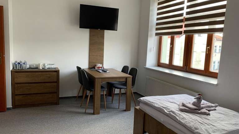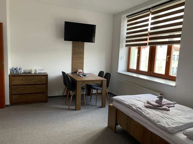 Das Hotel Kamrovec in Tachov bietet seinen Gästen einen angenehmen Aufenthalt mit kostenfreiem WLAN, einer Gemeinschaftslounge und komfortablen Nichtraucherzimmern. Die zentrale Lage ermöglicht es den Gästen, die Sehenswürdigkeiten der Umgebung wie die Singende Fontäne und das Schloss Bečov nad Teplou leicht zu erreichen. Die Zimmer sind gemütlich eingerichtet und bieten Annehmlichkeiten wie einen Flachbild-TV und ein eigenes Bad. Ein kontinentales Frühstück sorgt für einen guten Start in den Tag.