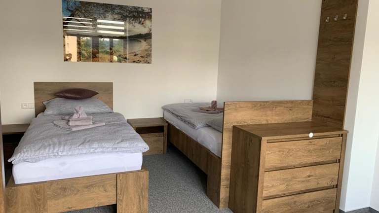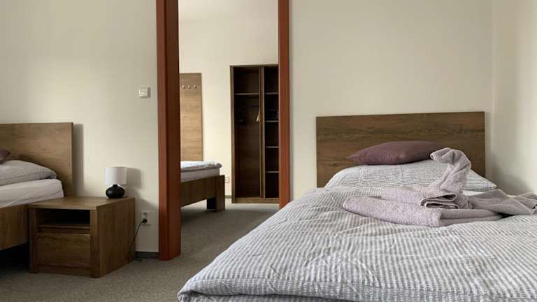Das Hotel Kamrovec liegt in Tachov und ist etwa 26 km von der Kolonnade an der Singenden Fontäne entfernt. Die Unterkunft befindet sich auch in der Nähe von anderen Sehenswürdigkeiten wie dem Schloss und dem Schloss Bečov nad Teplou (48 km) und dem Kloster Teplá (32 km). In der Umgebung gibt es zahlreiche Möglichkeiten für Aktivitäten wie Wandern und Radfahren. Der internationale Flughafen Karlsbad ist etwa 64 km entfernt.