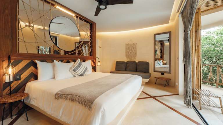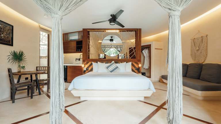 Die klimatisierten Zimmer des Kan Tulum Hotel sind mit einem Schreibtisch, Bettwäsche und einem Balkon mit Stadtblick ausgestattet. Die Zimmer verfügen über ein eigenes Badezimmer. Bestimmte Zimmer sind zusätzlich mit einer Kücheneinheit und Kühlschrank versehen. Ein Safe ist in allen Zimmern vorhanden.