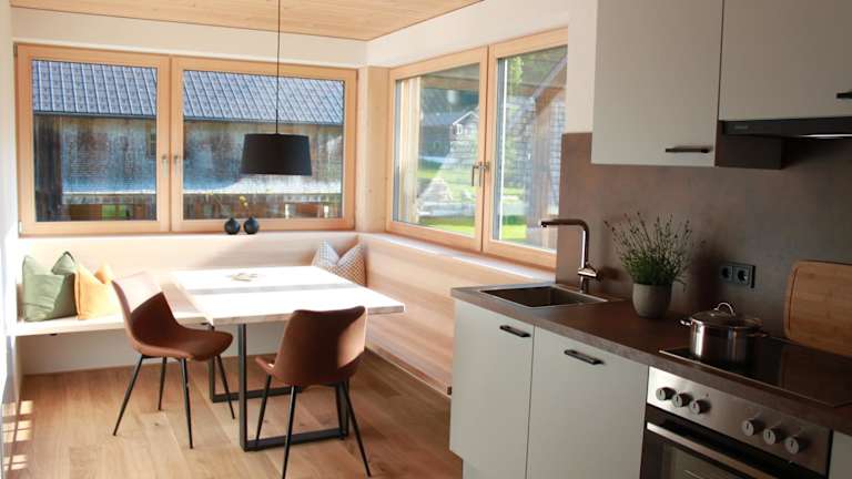 Die Ferienwohnung verfügt über zwei Schlafzimmer, ein Wohnzimmer sowie eine gut ausgestattete Küche mit Kühlschrank und Geschirrspüler. Ein Badezimmer mit Dusche ist ebenfalls vorhanden. Die Terrasse erlaubt einen schönen Bergblick und es werden Handtücher und Bettwäsche bereitgestellt.