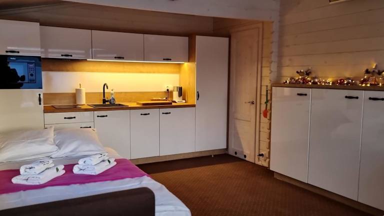 Kantadaj Village Domki Prestige überzeugt durch einen einladenden Pool, einen heimeligen Garten sowie eine Gemeinschaftslounge mit Blick auf den Pool. Kostenloses WLAN ist in der gesamten Unterkunft verfügbar. Jede Wohneinheit verfügt über eine Terrasse mit Bergblick, ein Kabel Flachbild-TV, eine gut ausgestattete Küchenzeile sowie ein eigenes Badezimmer mit Badewanne oder Dusche. Zur Ausstattung gehören auch ein Kühlschrank, ein Geschirrspüler, eine Mikrowelle und ein Wasserkocher.