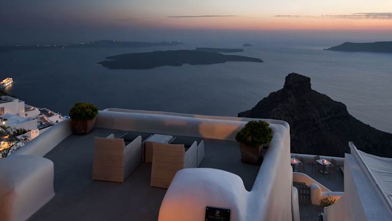 Das Kapari Natural Resort befindet sich im charmanten Dorf Imerovigli und bietet einen herrlichen Blick auf die Caldera der Ägäis. Die Stadt Fira ist lediglich 2 km entfernt, während der Flughafen Thira in einer Entfernung von 8 km schnell zu erreichen ist. Der Hafen der Insel liegt 10 km entfernt. Öffentliche Parkiermöglichkeiten stehen in der Nähe kostenfrei zur Verfügung.