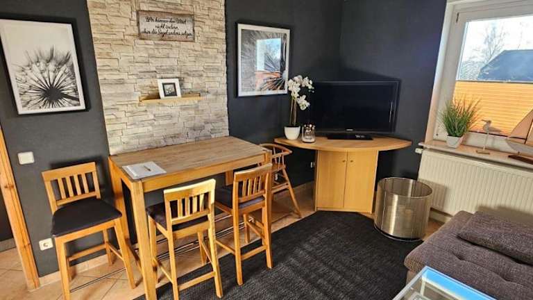 Die Unterkunft Kapitänshaus - Wolkenstube bietet Übernachtungsmöglichkeiten in einer Ferienwohnung im ersten Stock mit einem Garten, in dem Grillmöglichkeiten vorhanden sind. Die Unterkunft verfügt über einen direkten Zugang zur Sauna.