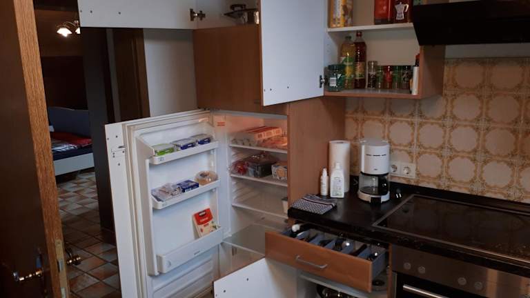 Die Ferienwohnung umfasst 2 Schlafzimmer, 1 Badezimmer, Bettwäsche und Handtücher. Zur Ausstattung gehören ein TV mit Kabelkanälen, ein Essbereich, eine voll ausgestattete Küche sowie ein Balkon mit Blick ins Grüne.