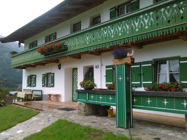 Unsere Gästezimmer, möbliert mit wunderschönen alten Bauernmöbeln, befinden sich in unserem über 600 Jahre alten und denkmalgeschütztem Lehen. Alle Zimmer sind mit Dusche & WC, Radio, WLAN und Balkon ausgestattet. Bei Sonne genießen Sie im Liegestuhl auf unserer Wies'n oder auf der Sonnenterrasse die Ruhe am Berg, unternehmen einen Spaziergang oder eine Radtour auf die Alm und nützen das umfangreiche Angebot der Nationalparkgemeinde Ramsau. Abends können unsere Gäste bei einer gemütlichen Brotzeit den Tag ausklingen lassen. Preise: Wir bieten Ihnen 5 romantische Ferienwohnungen für je 2 Personen mit duftendem Holz und liebevollen Details. Die circa 40-50 qm² großen Ferienwohnungen bestehen aus: Wohnraum mit Essecke, Flachbildschirmfernseher, Radio mit CD-Player Küche mit Backofen, Kühlschrank mit Gefrierfach, Kaffeemaschine, Toaster, Wasserkocher, Eierkocher, teils Spühlmaschine Bad mit Dusche und WC, Fön, Seifenspender Handtücher, Badetücher und Geschirrtücher sind vorhanden Bettwäsche und Tischwäsche inklusive Zirben-Schlafzimmer großer Balkon mit Panoramablick Auf Wunsch Brötchenservice Ferienwohnung 1: "Beim Sepperl" - Tagespreis: 82.- € zzgl. Kurtaxe Ferienwohnung 2: "Bei da Kathi" - Tagespreis: 82.- € zzgl. Kurtaxe Ferienwohnung 3: "Beim Lenze" - Tagespreis: 95.-€ zzgl. Kurtaxe Ferienwohnung 3: "Beim Beda" - Tagespreis: 120.-€ zzgl. Kurtaxe Ferienwohnung 3: "Beim Lisi" - Tagespreis: 120.-€ zzgl. Kurtaxe Kurtaxe pro Nacht: Erwachsene 2,60 €, Kinder von 6 - 16 Jahren 1,10 €