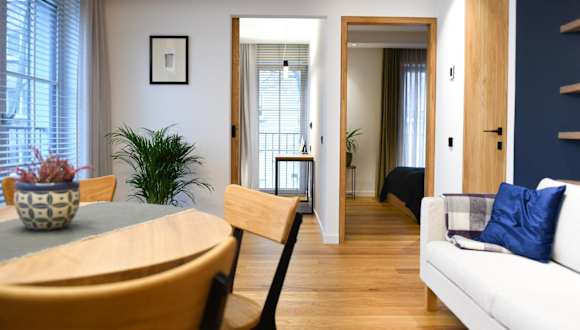 Die Ferienwohnung bietet zwei Schlafzimmer sowie ein Badezimmer mit einer Dusche. Zur Ausstattung gehören ein Flachbild-TV mit Kabelkanälen und eine gut ausgestattete Küche mit Kühlschrank und Geschirrspüler. Darüber hinaus werden Handtücher und Bettwäsche bereitgestellt.