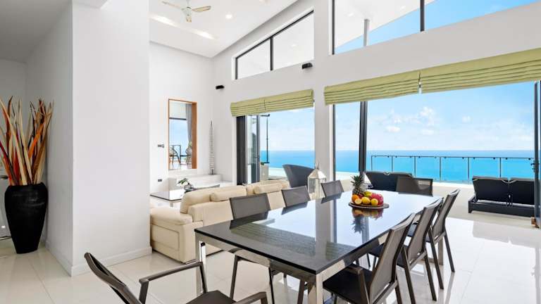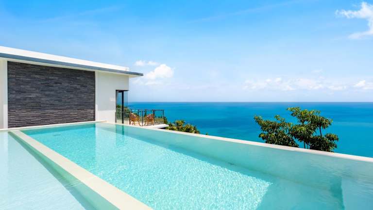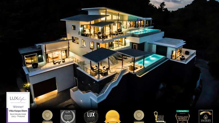 Die Karpe Diem Villa - Twin Infinity Pools ist eine klimatisierte Unterkunft mit einem Whirlpool und einem einladenden Pool. Die Gemeinschaftslounge lädt zum Verweilen ein. Die Villa bietet einen beeindruckenden Meerblick und eine Terrasse, die ein entspanntes Ambiente schafft.