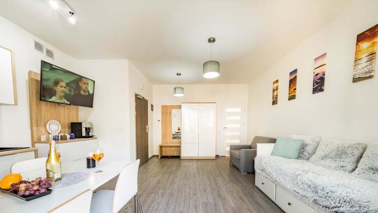 Das KASANDRA in Pobierowo ist eine ideale Unterkunft für einen Strandurlaub. Mit nur 500 m Entfernung zum Strand Pobierowo und 1,3 km zum Strand Łukęcin bietet es eine bequeme Lage für alle, die das Meer genießen möchten. Das Apartment mit Balkon und kostenfreien Privatparkplätzen bietet allen Komfort, den man für einen erholsamen Aufenthalt benötigt. Die Küchenzeile ist gut ausgestattet und das Wohnzimmer verfügt über einen Flachbild-Sat-TV. In der Umgebung gibt es auch einige Sehenswürdigkeiten, wie den Walk of Fame in Misdroy und den Golfclub Amber Baltic. Der Flughafen Heringsdorf ist ebenfalls gut erreichbar.