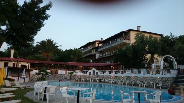 Das Kassandra Bay Hotel liegt in Kryopigi, etwa 800 m vom Strand entfernt. Die Entfernung zum Stadtzentrum beträgt ca. 600 m, während der Bahnhof ca. 600 m entfernt ist. Der Flughafen ist in etwa 82 km erreichbar.