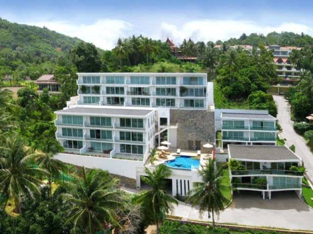 Kata Ocean View Eigentumswohnungen in Phuket, Thailand. Unser Apartment Komplex besteht aus 49 Einheiten mit Meeresblick, abgeschieden auf einem Hügel gelegen mit Blick über Kata Beach. Unsere modernen Apartments bieten innovatives Design zusammen mit einem atemberaubenden Blick auf das Meer, einen großen allgemeinen Swimming Pool und ein großes Wohnzimmer mit einer europäischen, integrierten Wohnküche. Man hat die Wahl zwischen einem oder zwei Schlafzimmern und manche Wohnungen verfügen sogar über ein zweites Schlafzimmerbad. Die Apartments sind komplett möbliert und lassen im Einrichtungsstil eine zeitlose Eleganz erkennen. Der große Balkon mit Glasfront blickt direkt auf Katas spektakuläre Sonnenuntergänge.