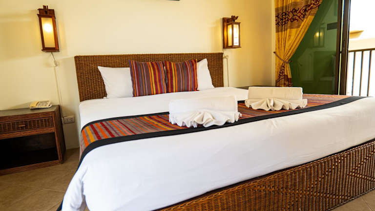 Die Zimmer sind ausgestattet mit einer Klimaanlage sowie einem Balkon. Jedes Zimmer verfügt über ein Doppelbett, und Zustellbetten können angefordert werden. Ein Safe schützt das Eigentum der Gäste, und ein Kühlschrank sowie eine Tee-/Kaffeemaschine sind ebenfalls vorhanden. Zudem gibt es eine Hosenpresse, Telefon, TV-Gerät und Wifi. Die Badezimmer sind mit einer Dusche und einer Badewanne ausgestattet und es stehen Nichtraucherzimmer zur Verfügung.