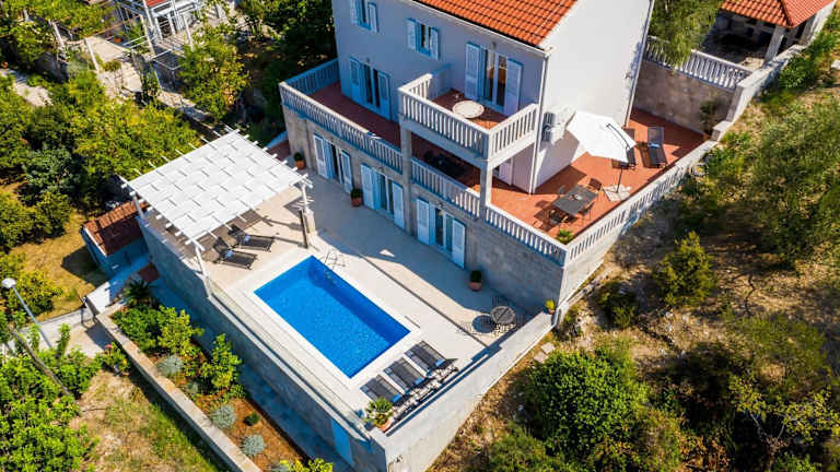 Die Ferienwohnung Kate's Perfect Family Villa in Elaphiti bietet eine geräumige Unterkunft für Familien mit 7 separaten Schlafzimmern und 4 Badezimmern. Zudem steht ein einladendes Wohnzimmer zur Verfügung.