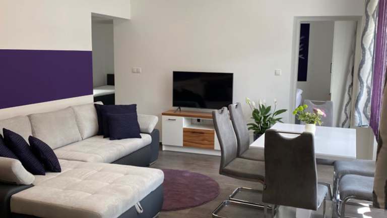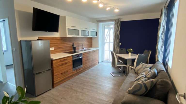 Kathis Juwel bietet Übernachtungsmöglichkeiten mit kostenlosem Wifi und einem kostenlosen Privatparkieren. Die Wohneinheiten sind mit Parkettböden ausgestattet und verfügen über eine voll ausgestattete Küche, die einen Kühlschrank, einen Geschirrspüler, einen Ofen, eine Mikrowelle, eine Kaffeemaschine sowie einen Wasserkocher umfasst. Zudem gibt es einen Essbereich, einen Flachbild-TV mit Satellitenkanälen sowie ein eigenes Badezimmer mit Dusche und Haartrockner. Die Unterkunft bietet zusätzlich eine Terrasse.