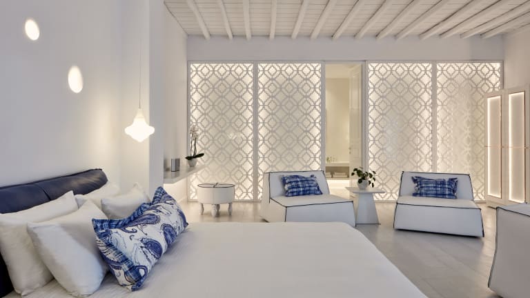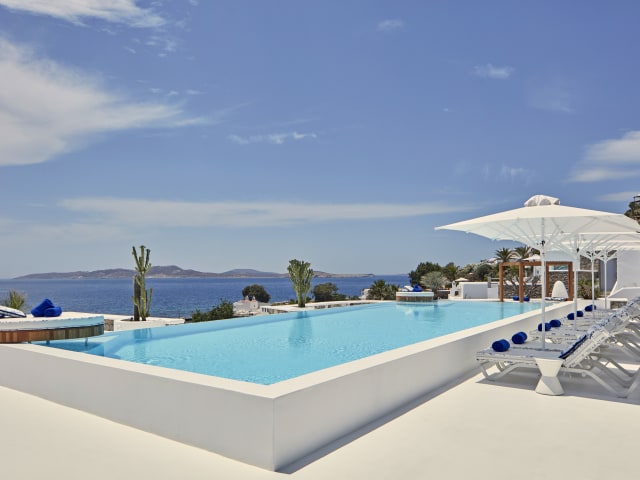 Das 5-Sterne-Boutique-Hotel Katikies Mykonos liegt direkt am Strand von Agios Ioannis auf Mykonos und bietet eine Auswahl an gehobenen gastronomischen Einrichtungen, 2 Infinity-Pools, ein Wellnesscenter und ein Fitnessstudio. Im Kykladenstil mit modernen Elementen bietet das Hotel elegant dekorierte Zimmer und Suiten mit unverbaubarem Meerblick. Die Unterkünfte im Katikies Mykonos bieten eigene Pools oder Whirlpools im Freien und führen auf eine eigene Terrasse mit einem Loungebereich. Zur Ausstattung gehören ein Flachbild-Sat-TV, ein iPod-Player, eine Nespresso-Kaffeemaschine, ein Safe und eine Minibar. Die modernen Badezimmer sind mit einem Haartrockner, Bademänteln, Hausschuhen und kostenfreien Pflegeprodukten ausgestattet. Der Zimmerservice steht Ihnen rund um die Uhr zur Verfügung. Sie können sich auf den Liegestühlen am Pool entspannen, ein erfrischendes Bad in den Infinity-Pools genießen oder sich im hoteleigenen Wellnesscenter mit einer Vielzahl von Massagen, Fußwaschritualen und verjüngenden Gesichts- und Körperanwendungen verwöhnen lassen. Eine Modeboutique mit griechischen und internationalen Designern und Marken ist ebenfalls an der Unterkunft vorhanden. Zu den gastronomischen Angeboten im Katikies Mykonos gehört das "Mikrasia Dinner experience", wo Sie Aromen aus Konstantinopel und Kleinasien, die mit einem modernen Touch zubereitet werden, sowie die romantische Seltz-Champagnerbar und das Restaurant kosten können. Eine Auswahl an griechischen Weinen, die von eleganten Aromen begleitet werden, können Sie auch in der Weinverkostungsbar der Unterkunft genießen. Das Katikies Mykonos liegt 4,5 km vom Hafen und Flughafen von Mykonos und 4 km von der kosmopolitischen Stadt Mykonos entfernt. Eine 24-Stunden-Rezeption, ein Tourenschalter sowie der Transferservice dienen Ihrem weiteren Komfort.