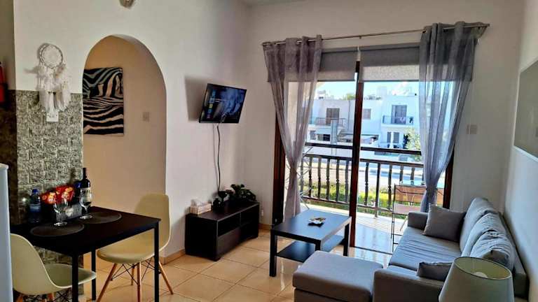 Kato Paphos Apt bietet Stadtblick und einen Balkon. Die Ferienwohnung umfasst 2 Schlafzimmer, ein Wohnzimmer, eine voll ausgestattete Küche sowie ein Badezimmer.