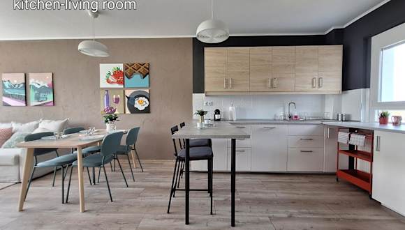 Die Ferienwohnung besteht aus einem Schlafzimmer, einem Wohnzimmer, einer voll ausgestatteten Küche und einem Badezimmer mit Badewanne. Die Unterkunft bietet Bequemlichkeit wie Klimaanlage, kostenlosen WLAN-Zugang und Nichtraucherzimmer. Die Räume sind unter Berücksichtigung der Reinigungsvorschriften der örtlichen Behörden vorbereitet.