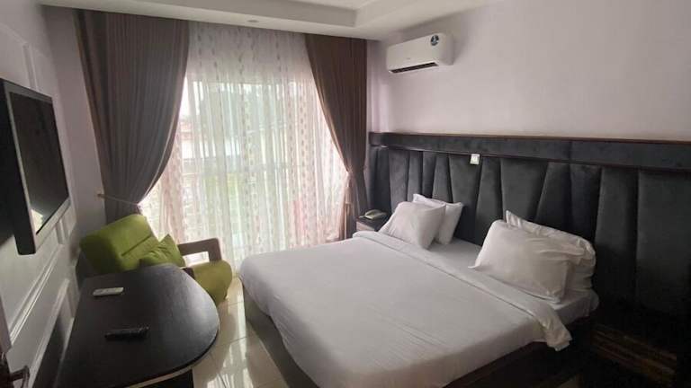 Die Zimmer im Kawruky Hotel Benin sind mit einem Desk, einer Klimaanlage und einem Flachbild-TV ausgestattet. Einige Wohneinheiten verfügen zudem über einen Balkon und einen Kühlschrank. Familienzimmer stehen ebenfalls zur Verfügung.