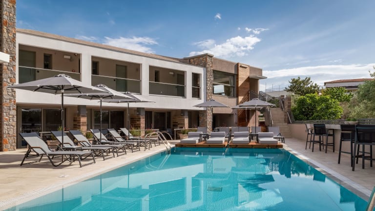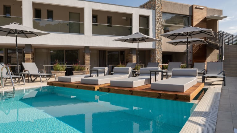 Das Hotel KB Ammos-Adults only liegt nur wenige Gehminuten vom Strand Megali Ammos und dem Papadiamanti Museum entfernt. Die Lage ermöglicht es Ihnen, die schöne Umgebung zu erkunden und die kulturellen Sehenswürdigkeiten zu besichtigen. Der Hafen von Skiathos und der Strand von Koukounaries sind ebenfalls leicht zu erreichen.