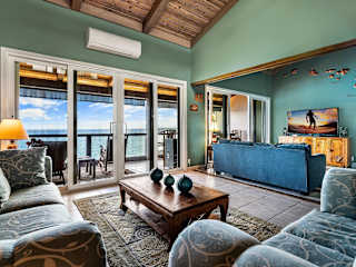 Keauhou Kona Surf & Racquet Club #5-303 ist eine klimatisierte Ferienunterkunft mit 2 Schlafzimmern und 3 Badezimmern. Die Wohnung ist mit Bettwäsche, Handtüchern, einem Flachbild-TV mit Kabelkanälen, einem Essbereich, einer voll ausgestatteten Küche und einem Balkon mit Blick auf das Meer ausgestattet. Die Gäste profitieren von kostenlosem WLAN und einem Privatparkplatz.