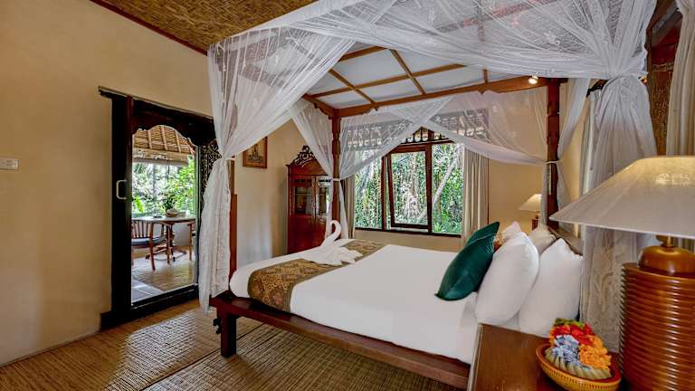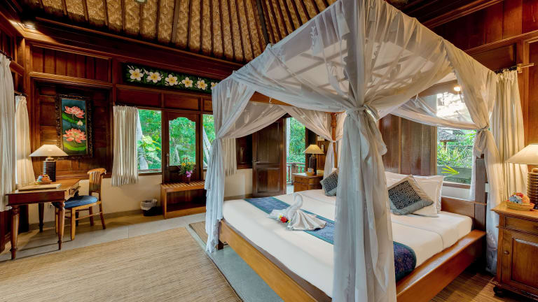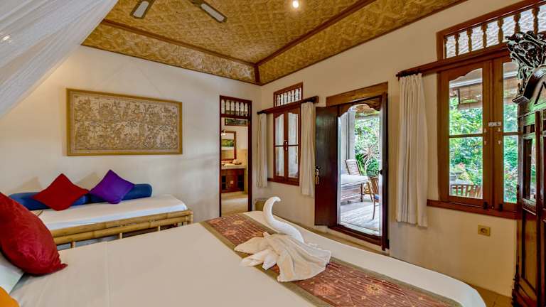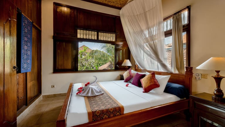Jedes Zimmer in der Unterkunft Kebun Indah Ubud ist mit einem eigenen Badezimmer und einem Schreibtisch ausgestattet. Einige Zimmer bieten Poolblick, und alle Zimmer verfügen über eine Veranda oder einen Patio. Die Gästezimmer sind zudem mit einem Kleiderschrank ausgestattet.