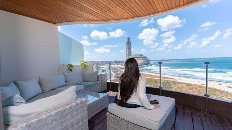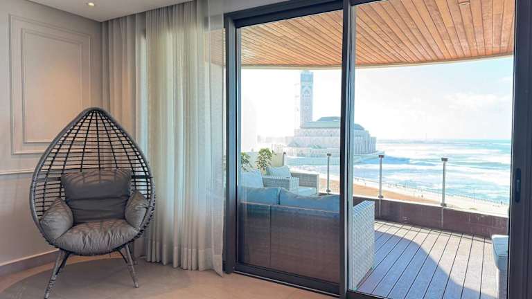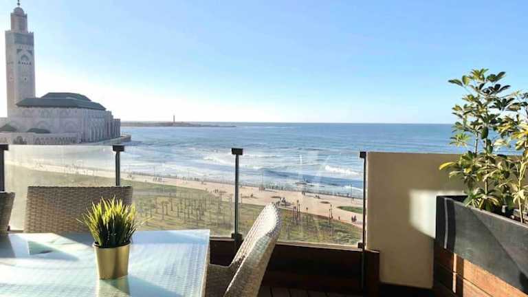 Die Unterkunft befindet sich direkt am Strand und bietet einen schönen Stadtblick. Sie liegt ungefähr 1,1 km von der Hassan-II.-Moschee entfernt. Verschiedene Sehenswürdigkeiten wie das Anfa Place Living Resort und das Einkaufszentrum Morocco Mall sind ebenfalls in der Nähe. Der Flughafen Casablanca Mohammed V liegt in einer Entfernung von 30 km.